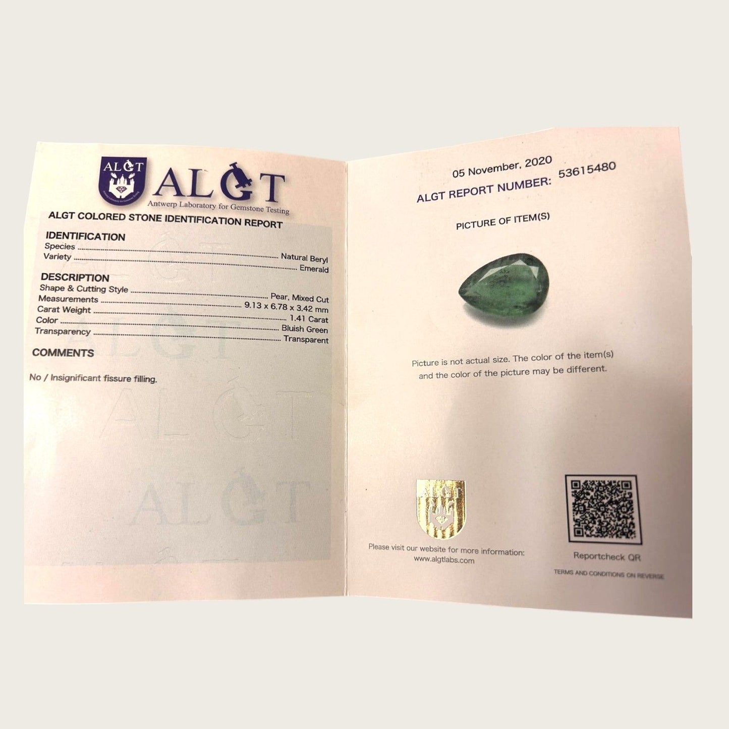 Livrée avec un rapport ALGT du 5 novembre 2020 nr.53615480.