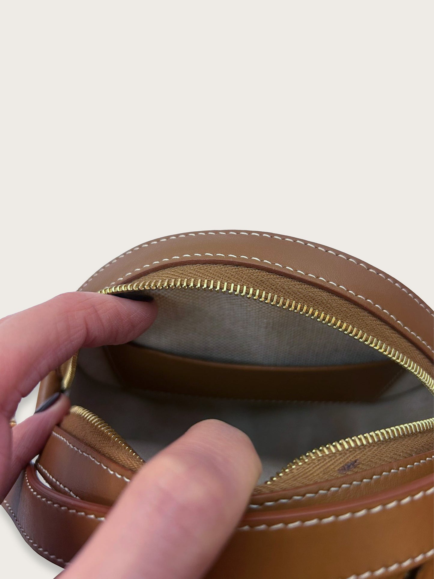 Son design circulaire, graphique et intemporel, en fait un accessoire idéal au quotidien comme pour des occasions plus habillées. Porté à l’épaule ou en bandoulière grâce à sa sangle plate réglable, il allie confort et allure. L’intérieur, doublé en toile ton sur ton, accueille l’essentiel avec une poche ouverte.