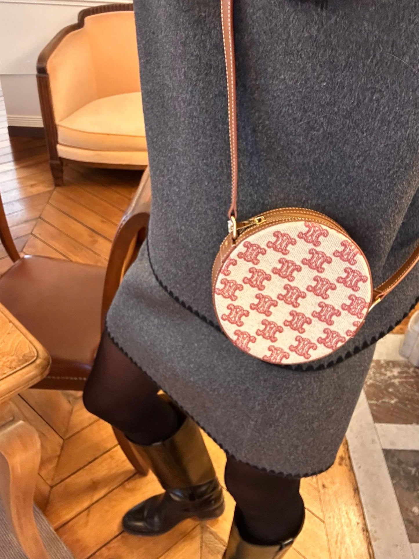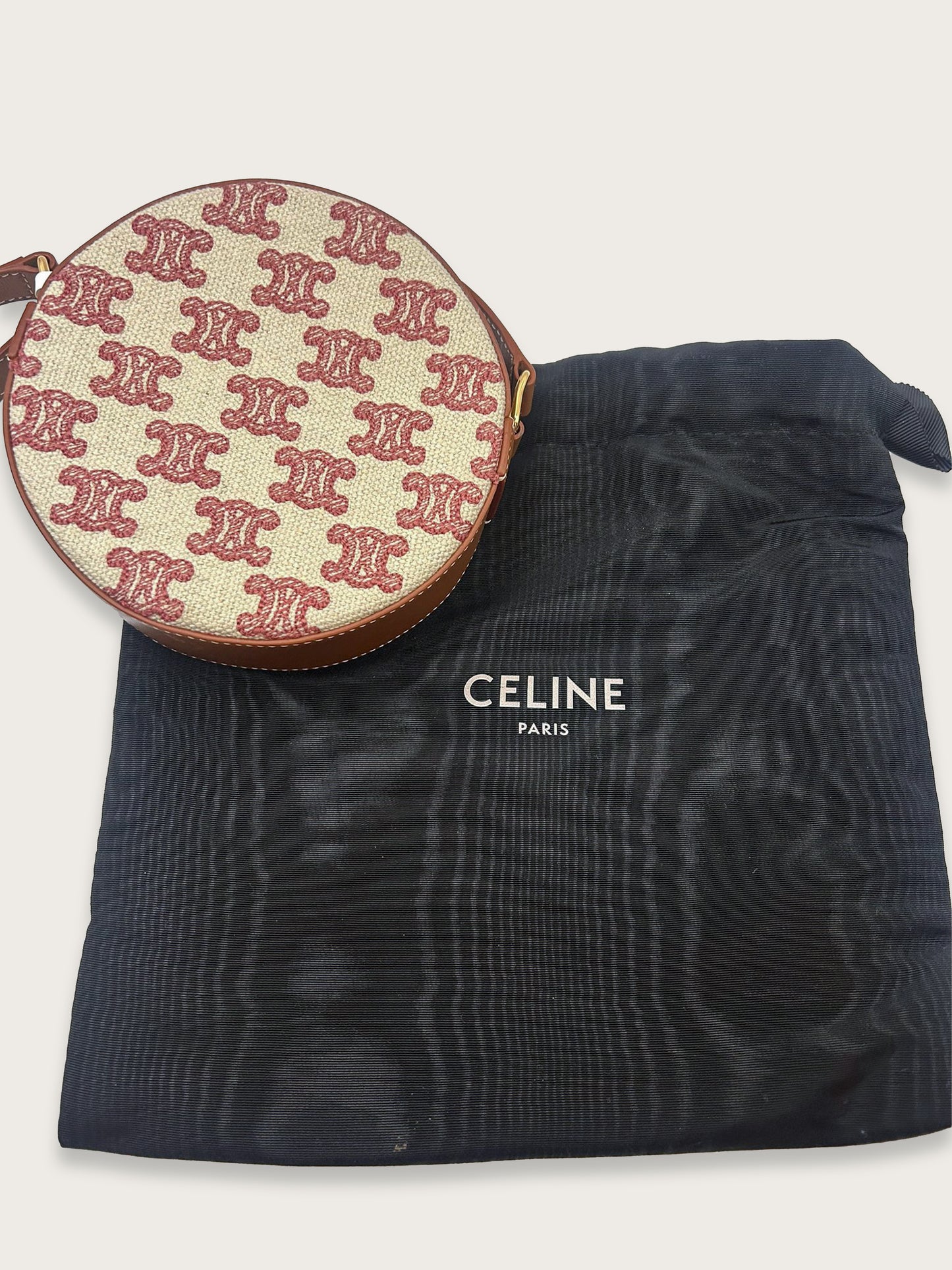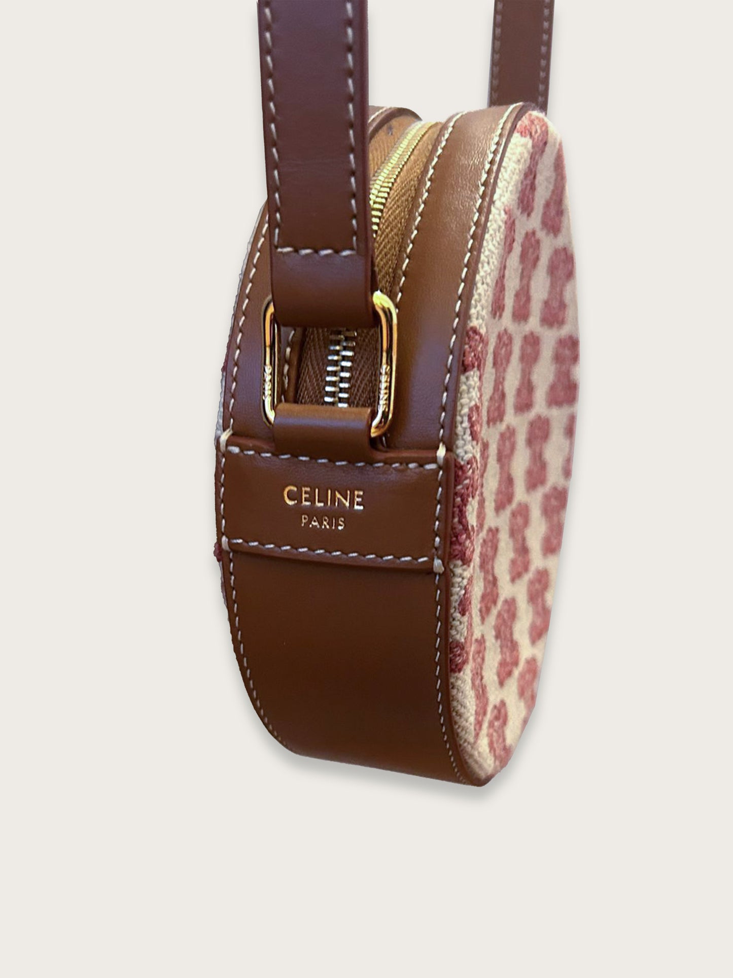 Icône contemporaine de la Maison CELINE, le sac rond Triomphe séduit par son élégance minimaliste et son format compact très désirable. Confectionné en toile Triomphe rose, rehaussée de cuir marron et d’une quincaillerie dorée brillante, il incarne l’esthétique parisienne chère à la marque.