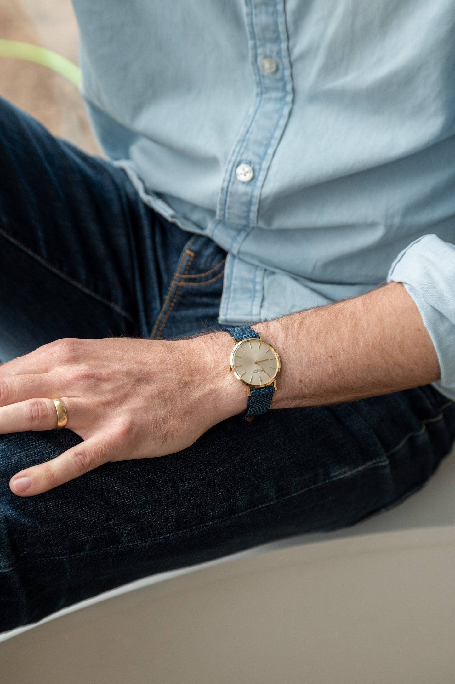Commercialisée début 1970, cette sobre Calatrava réf. 3537, est la montre habillée par excellence pour gentleman. Le cadran minimaliste en opaline argentée est ponctué de minces bâtons d'or appliqués et d'élégantes aiguilles bâtons, et le boîtier rond en or jaune de 33 mm a une merveilleuse présence sur le poignet.